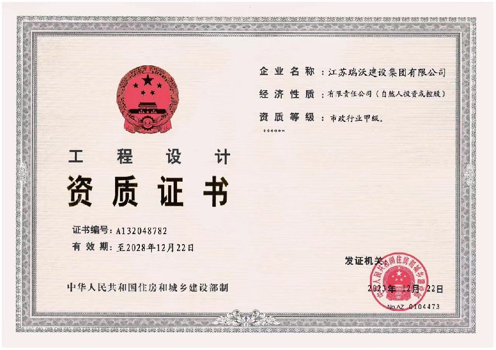 江蘇瑞沃建設集團有限公司成立于2007年,是一家以市政、交通工程建設為主導,集房屋建筑、交通安全設施、城市道路照明工程、電力工程、隧道工程、航道工程及投融資為一體的綜合性企業。企業注冊資本60000萬元,現有各類技術人員580人,其中中、高級以上人員498人,注冊類人員268人,一、二級建造師166人。公司榮獲“江蘇省建筑業優秀企業”、“江蘇省五一勞動獎狀”,連續多年被評為“揚州市先進企業”、“江蘇省建筑業百強企業”,連續八年蟬聯百強企業基礎設施類第一名。